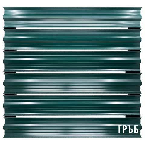 При този вид метална ограда профилът е покрит с два слоя грунд. Лицето на профила е боядисан с ПВЦ структурирана боя цвят Зелен RAL 6005, а гърба на металния профил е грундиран в зелен цвят.