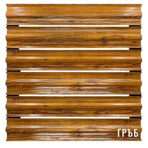 Металният профил е покрит с два слоя грунд и боядисан двустранно с ПВЦ боя имитация на златен дъб.