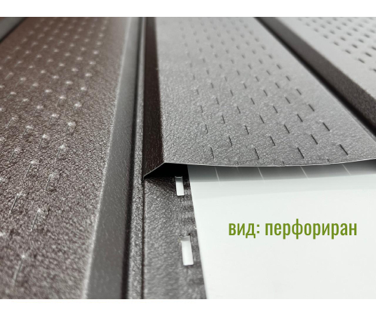 Метален сайдинг с полимерно покритие. Успешно се използва като вентилираща фасадна система, обшивка, сарай сачак, облицовка на стени и сгради; възможен вертикален и хоризонтален монтаж. Металният сайдинг може да бъде гладък, перфориран или рипс.