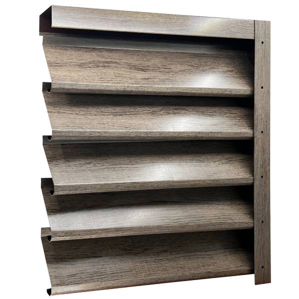 Ламелите за щори за ограда са изработени от поцинкована ламарина, покрити с два слоя грунд. Лице – сив дъб